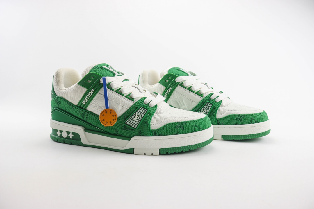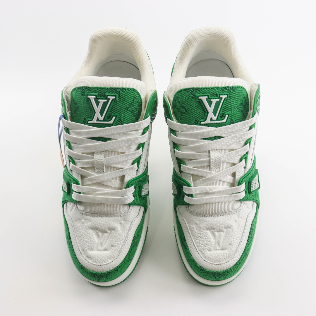 Louis Vuitton Trainer Green Monogram Denim White 1A9JHV/1A9JI1